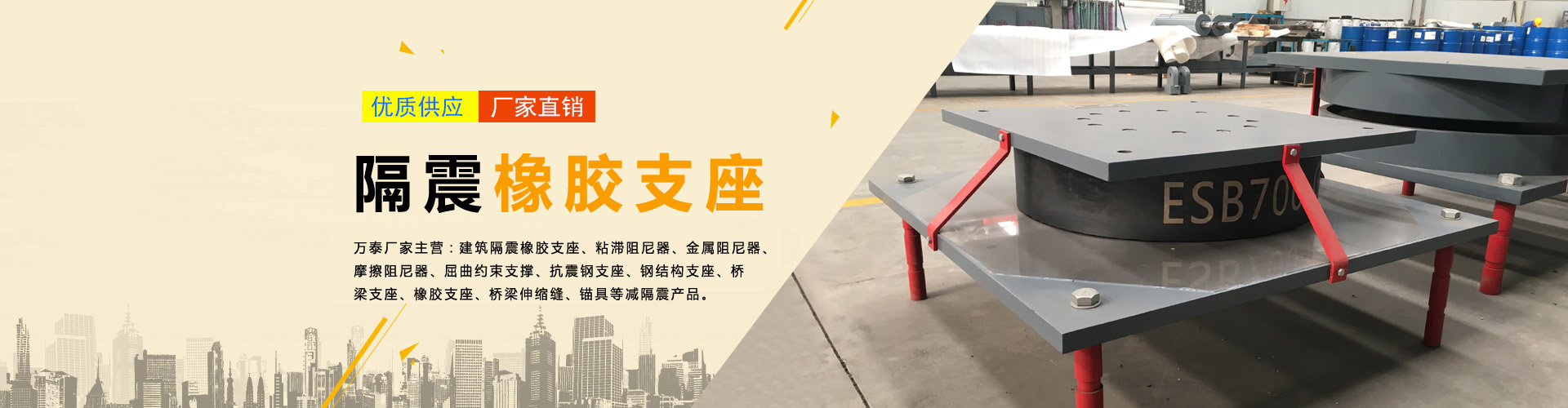 隔震產品系列 建筑隔震支座 鉛芯支座 減震產品系列 屈曲約束支撐 金屬阻尼器 摩擦阻尼器 連梁阻尼器 黏滯阻尼器 粘彈阻尼器 粘滯阻尼墻 調諧質量阻尼器 網(wǎng)架及鋼結構支座系列 抗震鋼支座 球鉸支座 連廊支座 網(wǎng)架鋼支座 網(wǎng)架橡膠支座 橋梁支座系列 盆式橡膠支座 板式橡膠支座 球型支座 高阻尼隔震支座 水平分散力支座 鐵路支座 伸縮裝置系列 型鋼伸縮縫 模數(shù)式伸縮縫 梳齒板伸縮縫 TST伸縮縫 預應力產品系列 預應力錨具 波紋管 其他工程產品 止水條 止水帶 橡膠壩 護欄支架 泄水管 閉孔泡沫板 防水卷材 土工材料 金屬絲網(wǎng) 支座配套鋼板 橡膠緩沖墊塊 路橋養(yǎng)護施工 路橋養(yǎng)護施工